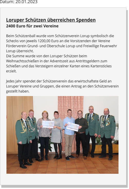 Die Summe wurde von den Loruper Schützen beim Weihnachtsschießen