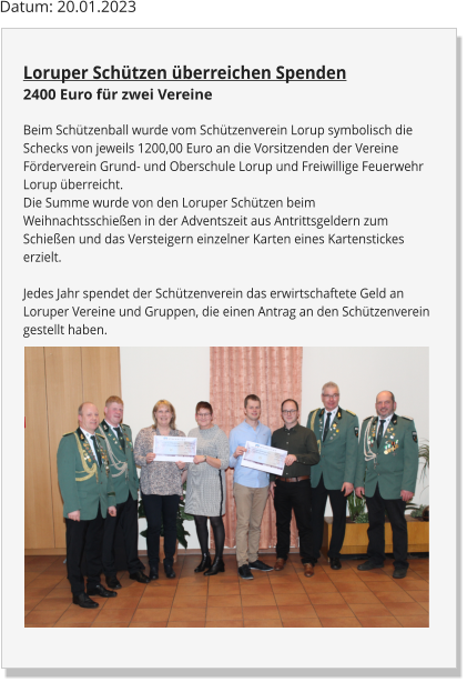 Die Summe wurde von den Loruper Schützen beim Weihnachtsschießen